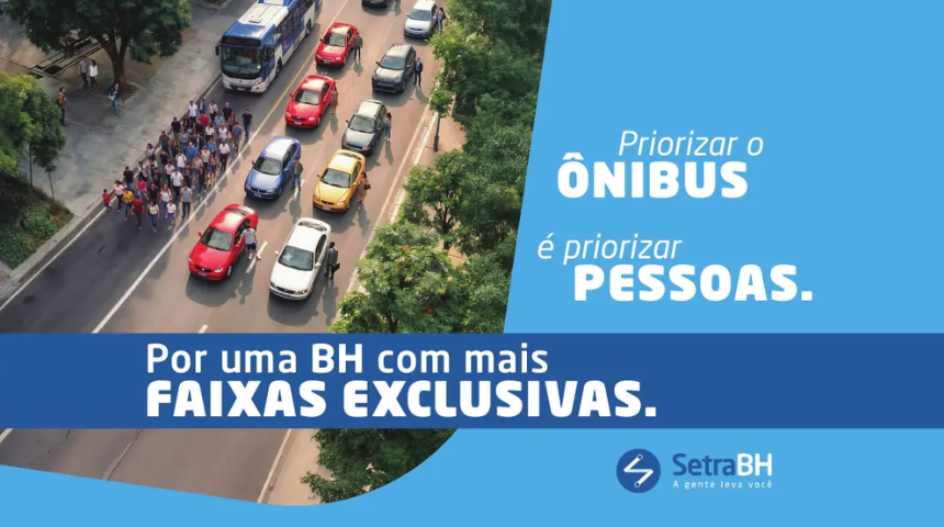 Campanha de conscientização busca ampliar o debate sobre mobilidade urbana, uso equilibrado das vias e a importância do respeito às regras que garantem o funcionamento das faixas exclusivas. Divulgação/SetraBH